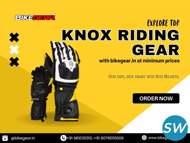 Raise your ride with Knox Riding gear from bikegear.in. This isn't simply gear; it's your safeguard out and about. From superior performance defensively covered jackets to gloves that impeccably balance assurance and comfort, Knox guarantees you're geared up for any eventuality. Intended for the brave rider, each piece mixes imaginative security with smooth style. Plunge into bikegear.in's top determination and find the reason why Knox is the go-to for riders who request the best. Ride more brilliant, more secure, and in style — in light of the fact that each journey merits the ideal gear. Wear up the best unbeatable classic Knox riding gear.