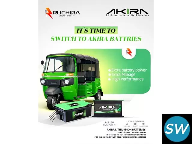 Increase your earnings with Akira Battery’s lithium ion battery for e rickshaw. Enjoy extended mileage, quick charging, and stable power output. These batteries are designed for heavy usage and long working hours, making them ideal for commercial drivers. Choose Akira Battery for a smarter and more efficient power solution.