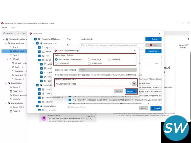 MailsDaddy Thunderbird to Outlook converter tool is the most popular and reliable solution to load and export emails from Thunderbird to PST format. The application manages internal and external folder structure during the whole conversion process and easily migrate data from Thunderbird to Outlook, EML, MSG, PDF and various others. User can also open emails and read it in display window before exporting entire mailbox in PST. The free demo edition of the software migrate up to 20 emails from each folder.