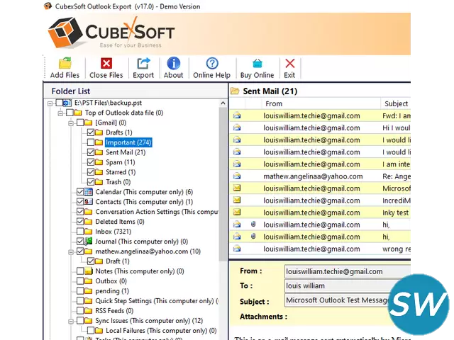 Use CubexSoft Outlook PST Converter Tool - reliable and powerful software to directly convert Outlook data items to multiple file formats like PST to PDF, MBOX, EML, EMLX, OLM, HTML, TXT, DOC, DOCX, RTF, PNG, JPEG, TIFF, GIF, Office 365, IMAP, and many more. This software allows you to batch export Outlook emails, contacts, calendars, tasks, and other items into desired file formats without using Outlook. It provides various advanced and beneficial features to instantly convert Outlook PST files without any problem. This software is completely free from any type of risk and supports all the versions of Mac OS & Windows OS.