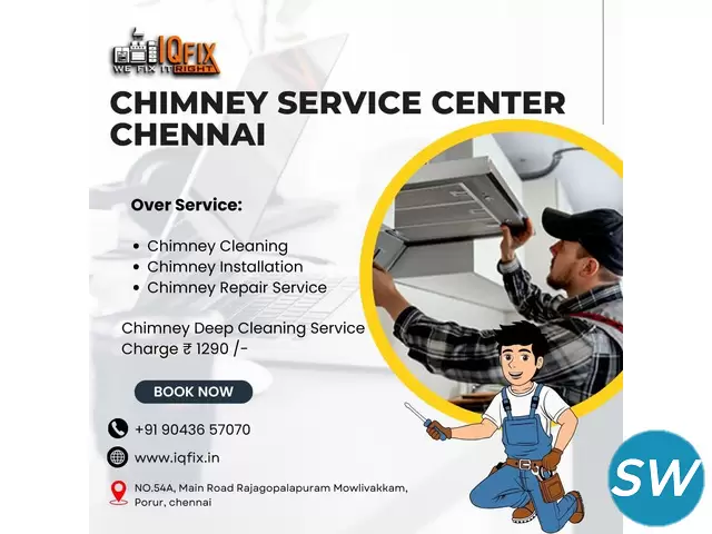 Are you looking for a trusted Chimney Service Center Chennai Look no further! At IQFix, we specialize in providing top-notch Kitchen Chimney Services Center Chennai, including Chimney Cleaning, Installation, Repair, and Deep Cleaning Services. With a team of skilled technicians and a commitment to excellence, we ensure your kitchen chimney functions efficiently and enhances your cooking experience.