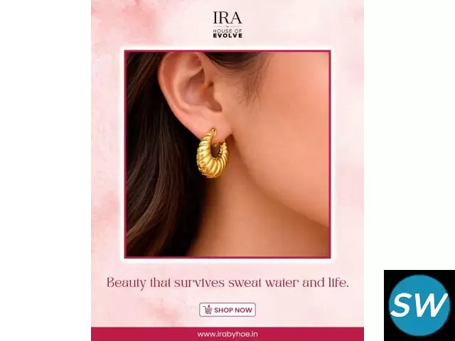 Discover the elegance of Anti-Tarnish Stainless Steel Fashion Jewellery by IRA by HOE. Our collection features waterproof, durable, and skin-friendly pieces designed for everyday wear and special occasions. Explore trendy earrings, necklaces, bracelets, rings, and minimal office wear jewellery crafted to maintain long-lasting shine. Elevate your style with affordable, stylish, and high-quality jewellery that resists tarnish and keeps you looking effortlessly elegant. Shop now and upgrade your jewellery collection with IRA by HOE.