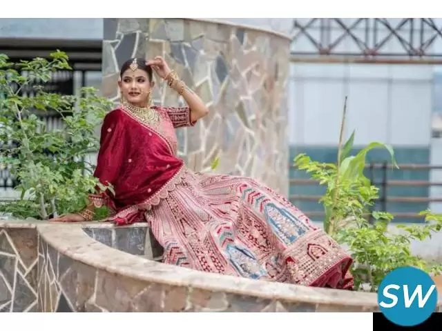 looking for a lehenga that feels effortlessly festive without being over the top — this is it. This Jaipuri gota patti lehenga is everything a wedding season wardrobe needs. Crafted on smooth jimmy choo fabric, the Moroccan blue skirt comes alive with hand-placed gota work floral motifs that shine beautifully in the li...