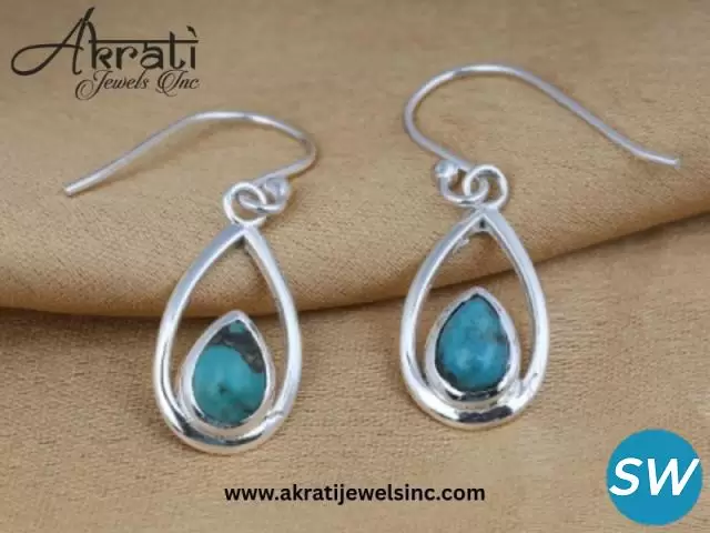 The beauty of blue copper turquoise Stone earrings, which was meant to complement any style with its intense colour and exquisite carving. Each couple is made to show the individuality of the gemstone, as well as the accuracy of the craftsmen at Akrati Jewels Inc. Our line of blue copper turquoise gemstone is unique an...