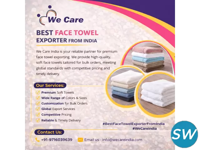 India has long been recognized globally for its textile industry, providing high-quality fabrics and products that cater to both domestic and international markets. Among these, face towels have emerged as an essential textile item that combines utility, comfort, and hygiene. At We Care India, we take pride in being a leading face towel exporter from India, delivering premium-quality products to clients worldwide.
