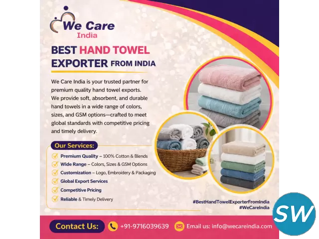 India is one of the top countries known for producing and exporting high-quality textiles. Among all textile products, hand towels from India are especially popular because of their comfort, absorbency, and long life. As a leading hand towel exporter from India, the country supplies millions of towels to countries around the world every year. Indian hand towels are loved for their softness, bright colors, and perfect finish, making them suitable for homes, hotels, gyms, and spas.