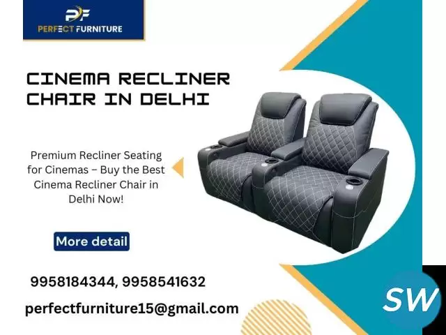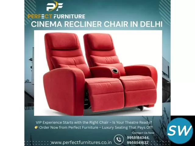Searching for a Cinema Recliner Chair in Delhi that blends comfort and luxury? At Perfect Furniture, we specialize in crafting recliner chairs that elevate the cinematic experience. Our Cinema Recliner Chair in Delhi options include premium cushioning, elegant finishes, and user-friendly recline functions. Ideal for VIP cinema halls and private theatres, our chairs are available in multiple styles and materials. Durable, stylish, and ergonomic – these recliners redefine movie-watching. Reach out to Perfect Furniture and upgrade your theater seating today.