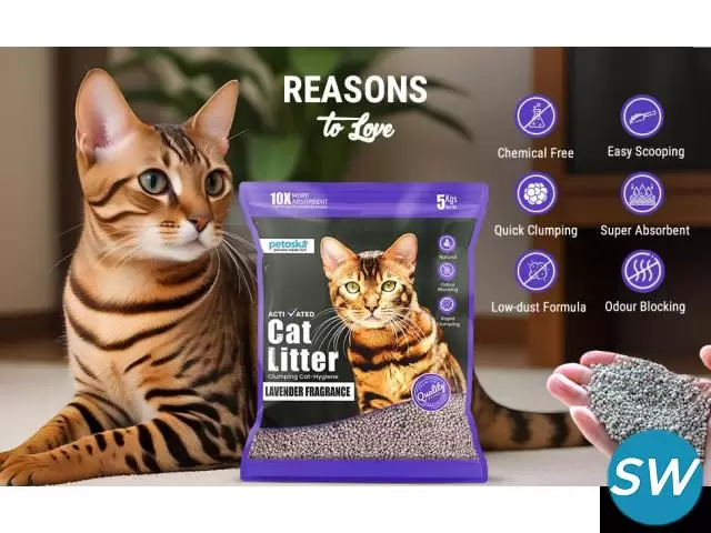 Choose our premium cat litter for reliable clumping and superior moisture management, designed to provide a consistently clean and odor-free environment for both you and your cat. Our specialized formula quickly forms firm, easy-to-scoop clumps, making daily clean-up effortless and minimizing waste. With advanced moisture-locking technology, it effectively absorbs liquid and controls odors, ensuring your cat's litter box stays fresh longer.