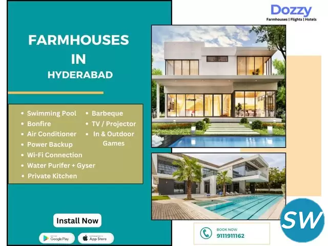 Dozzy Farmhouse Rentals offers the ideal getaway for your vacation in Hyderabad, combining comfort and natural beauty. Our spacious farmhouses come fully equipped with modern amenities, ensuring a relaxing and enjoyable stay. Whether you're looking for lush green lawns to unwind or contemporary living spaces for a comfortable retreat, our farmhouses provide a range of options to match your vacation needs. With ample parking, luxury accommodations, and personalized service, every detail is taken care of, making your stay seamless and memorable. Escape the hustle and bustle and enjoy a peaceful vacation at Dozzy Farmhouse Rentals in Hyderabad.