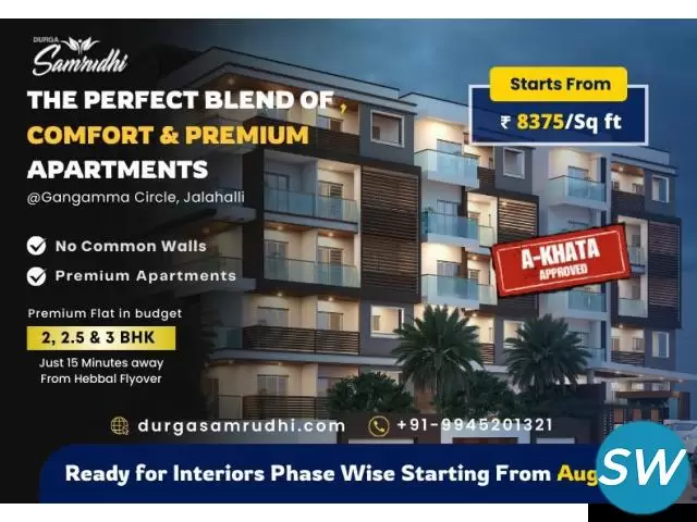Durga Samrudhi in Bangalore is a premium residential project designed for families seeking comfort, convenience, and modern amenities. The project offers well-planned apartments, clubhouse, landscaped spaces, children’s play area, and excellent connectivity to schools, tech parks, and transport hubs. Ideal for home buyers looking for quality living at great value.