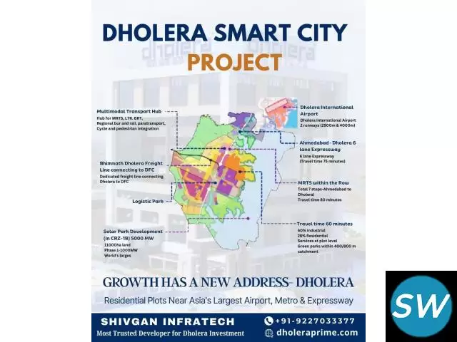 Dholera Smart City in Gujarat, India's first greenfield industrial city, offers high-growth, long-term investment opportunities (5–10+ years) in residential and industrial land, with prices starting around ₹25 lakh. Backed by the Gujarat government and part of the DMIC, major investments include a ₹3 lakh crore Adani d...