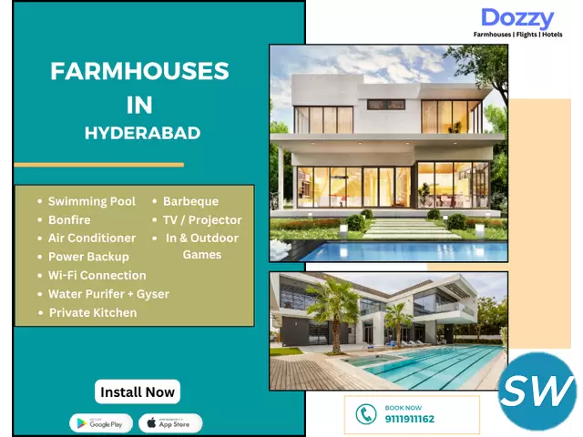 Dozzy Farmhouse Rentals offers the ideal getaway for your vacation in Hyderabad, combining comfort and natural beauty. Our spacious farmhouses come fully equipped with modern amenities, ensuring a relaxing and enjoyable stay. Whether you're looking for lush green lawns to unwind or contemporary living spaces for a comfortable retreat, our farmhouses provide a range of options to match your vacation needs. With ample parking, luxury accommodations, and personalized service, every detail is taken care of, making your stay seamless and memorable. Escape the hustle and bustle and enjoy a peaceful vacation at Dozzy Farmhouse Rentals in Hyderabad.