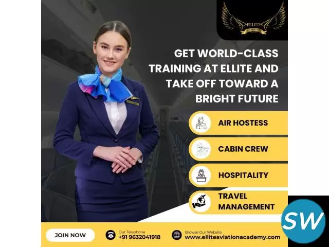 Kickstart your dream career at Ellite Aviation Academy, the leading aviation institute in Bangalore. Get expert training in cabin crew, air hostess, hospitality, and travel management, guided by experienced industry professionals. With 100% placement assistance in top airlines, we prepare you for a successful future in aviation. World-class training, expert mentorship — your high-flying journey begins here. Enroll now!