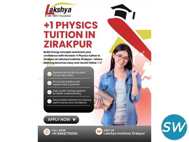 Looking for reliable 11th physics tuition in Zirakpur to build strong concepts and excel in exams? Join Lakshya Institute Zirakpur, where experienced faculty provides clear explanations, numerical problem-solving practice, and regular tests to ensure complete understanding of every topic. Our structured approach focuses on concept clarity and exam preparation, helping students gain confidence and improve performance. If you want result-oriented and high-quality 11th physics tuition in Zirakpur, Lakshya Institute Zirakpur is the perfect place for academic success.