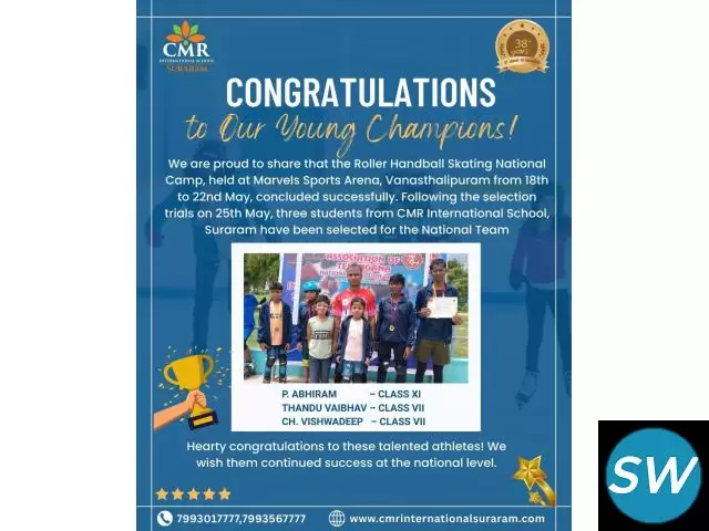 Searching for the best schools near me in Suraram, Hyderabad? CMR Schools offers top-quality education, modern facilities, and a holistic approach to learning. Recognized as one of the leading schools in Suraram, CMR focuses on academic excellence, extracurricular growth, and values-based education to help students achieve success. Parents looking for the best schools near me can trust CMR Schools, Suraram, Hyderabad, for its dedicated faculty, innovative teaching methods, and safe, nurturing environment.