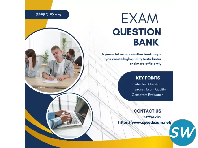 An exam question bank allows educators and organizations to store, manage, and reuse questions for multiple assessments. It ensures consistent testing standards and saves time. SpeedExam offers a structured question bank system to create secure, customizable, and scalable online exams.