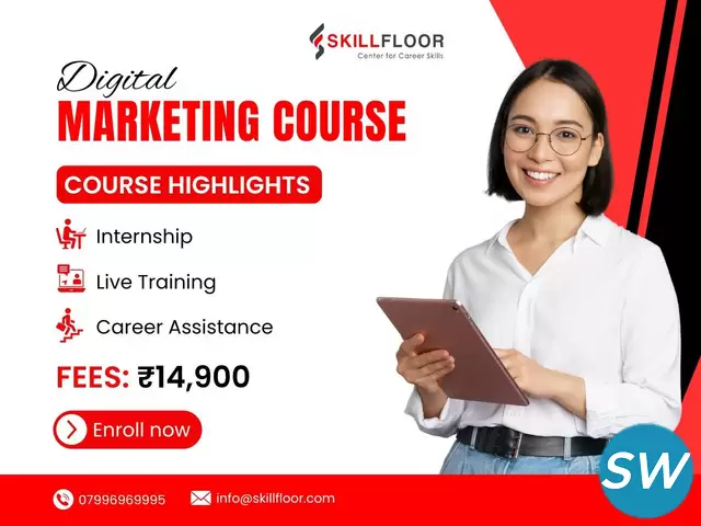 Skillfloor offers a comprehensive Digital Marketing course in Bangalore designed to help you master essential online marketing skills. This course will teach you how to promote businesses, products, and services using digital channels like social media, email, search engines, and websites.