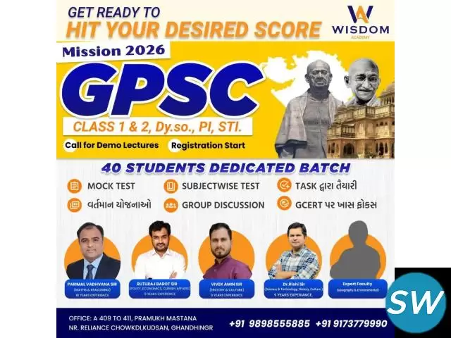 Dreaming of becoming a Gujarat Government Officer? Start your preparation with expert guidance at Wisdom Academy – the trusted GPSC coaching institute in Gandhinagar. At Wisdom Academy, students receive structured preparation, experienced faculty guidance, and comprehensive study materials to crack competitive exams li...