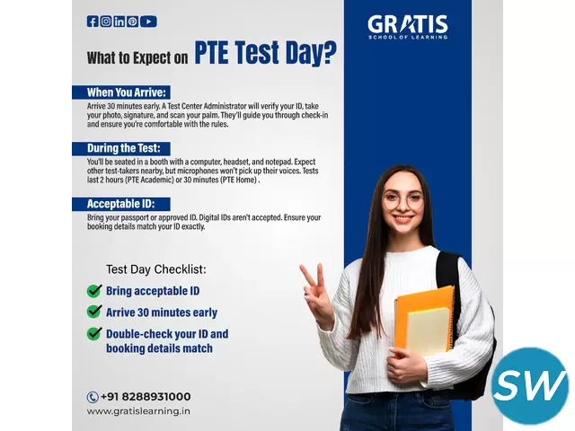 Are you looking to excel in the PTE exam and achieve your dreams of studying or settling abroad? Look no further than Gratis School of Learning, the best PTE institute in Panchkula! Our expert PTE trainers are highly qualified and have years of experience in guiding students toward success in the PTE exam. We provide c...