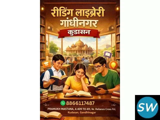 Reading Library in Kudasan Gandhinagar Are you preparing for Government Exams? Now study with full focus in a शांत, distraction-free environment This library is specially designed for: ✔️ GPSC Aspirants ✔️ UPSC Students ✔️ Class 3 Exam Preparation ✔️ PSI / Constable Candidates ✔️ STI & Other Gujarat Government Exam...