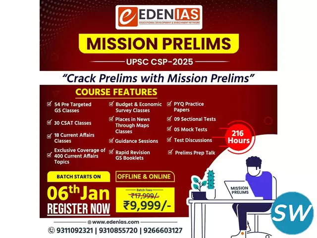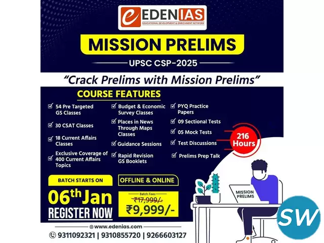 EDEN IAS – best coaching institute for UPSC is offering "MISSION PRELIMS," one of the most thorough and prestigious program focusing on making one complete with prelims preparation.