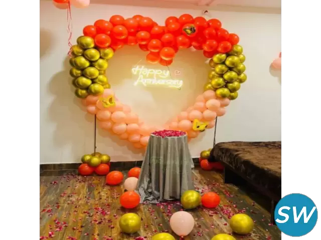 Make your anniversary unforgettable with stunning balloon decorations by our anniversary balloon decorators in Chandigarh and Mohali that add a touch of elegance, fun, and color to your celebration. Whether you're celebrating a milestone anniversary or a simple romantic occasion, our bespoke balloon designs will set the perfect atmosphere for your special day. From intimate gatherings to grand parties, we specialize in creating memorable balloon installations that reflect your love story through our anniversary balloon decoration in Chandigarh, India.