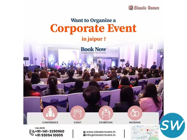 Turn your corporate events into unforgettable experiences with expert event organizers in Jaipur. Classic Rovers specializes in designing, planning, and executing seamless corporate gatherings. From small business meetings to grand product launches and conferences, we handle every aspect with precision and creativity.