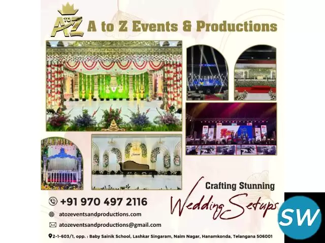 AtoZ Events & Productions is a leading event management company in Warangal & Hanamkonda, specializing in weddings, corporate events, parties, and more. We offer end-to-end planning and execution to make your events memorable, seamless, and stress-free.