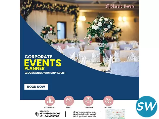 Classic Rovers is your go-to Event Planners in Jaipur, delivering exceptional services for corporate events of all sizes. Our expertise spans logistics coordination, audiovisual setups, catering, and more. We focus on aligning your event with your brand values, ensuring an unforgettable experience for attendees.