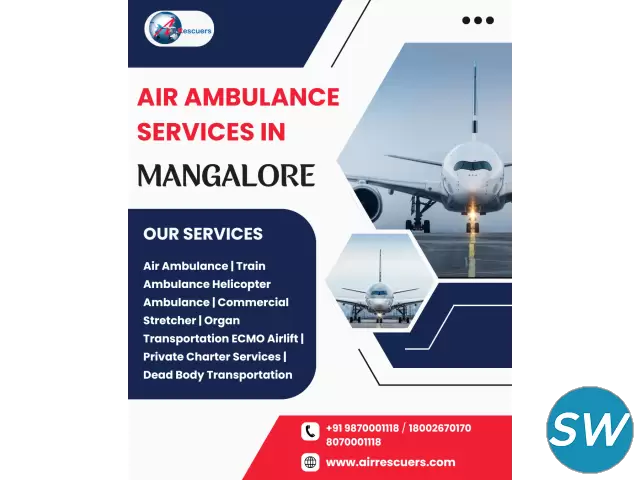 Round-the-clock fast and affordable Air Ambulance Services in Mangalore, with advanced medical support and expert medical staff, ensuring safe and comfortable patient transfers in emergencies. Key Advantages: Rapid Response Time Cutting-Edge Medical Equipment Expert Medical Professionals