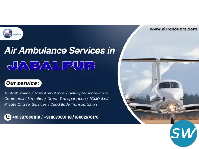 Air Ambulance Services in Jabalpur – Emergency Care Across India provides rapid patient transfers with advanced ICU support and skilled paramedics. With Air Rescuers ensuring safe, timely evacuations, patients receive critical medical attention during transit to leading hospitals nationwide. 24/7 Availability Nationwid...