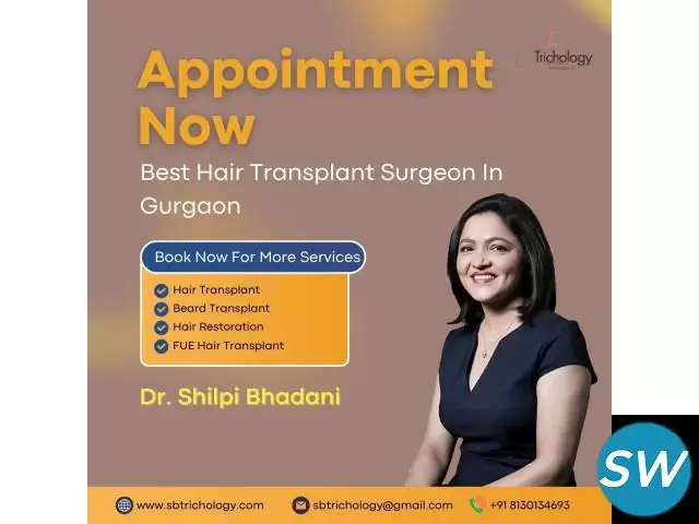 Tired of seeing your hair on the floor and on your comb rather than your head? The Best Hair Transplant Surgeon in Gurgaon, Dr. Shilpi Bhadani, is here to bring back your confidence with your precious hair. She provides a variety of hair loss treatments like PRP, FUT, and FUE. She also has her own signature hair transplant treatment called Hair Art, which can help with faster hair growth with minimal downtime. You can find an ideal treatment suitable for your scalp and hair loss consumption with a detailed consultation with Dr Shilpi Bhadani. Visit SB Trichology Clinic today for more details.