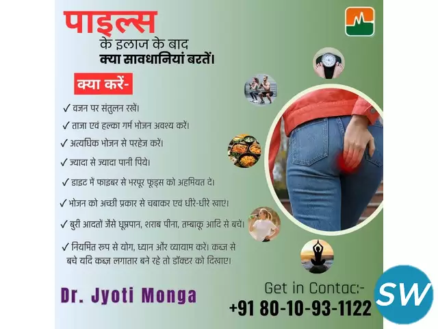 When it comes to getting relief from piles (hemorrhoids) through natural and holistic treatments, Dr. Jyoti Monga is one of the best Ayurvedic doctors for piles in Delhi NCR. With years of experience in Ayurvedic medicine, Dr. Monga combines traditional wisdom with modern techniques to provide effective and long-lasting solutions for piles. Her approach focuses on treating the root cause of the problem, promoting healing from within using personalized herbal remedies, dietary guidance, and lifestyle modifications. Patients appreciate her compassionate care, which not only ensures physical relief but also improves overall health. If you are looking for a safe and natural way to manage piles, Dr. Jyoti Monga's clinic is the ideal place for expert Ayurvedic treatment in Delhi NCR.