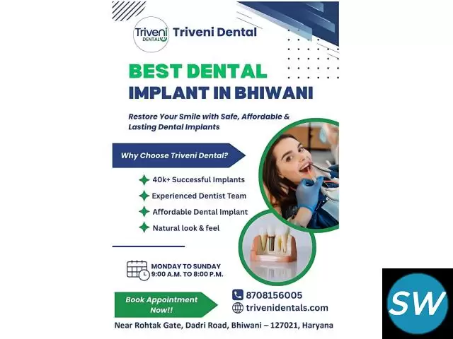 Looking for the best dental implant in Bhiwani?Choose Triveni Dental and get treated by the best dental implant doctors in Bhiwani at affordable cost with advanced technology. ✅Trusted as the best dentist in Bhiwani for implants ✅ Natural-looking, long-lasting results ✅ Affordable pricing starting from ₹20,000 | Book your appointment now!!