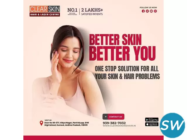 Your quest for skincare excellence ends at Clear Skin Hair and Laser Center, home to the Best Dermatologist in Kurnool. Receive unparalleled care and customized solutions for all your dermatological needs.