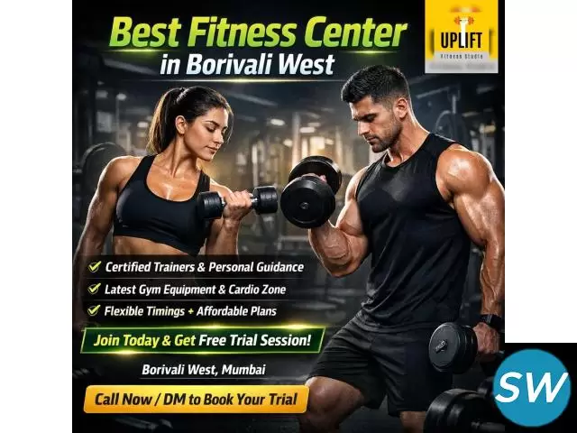 Uplift Fitness Studio is the best gym in Borivali West, offering world-class equipment and expert trainers to help you achieve your fitness goals. Known as a top strength training gym in Borivali West, we provide personalized workout plans, modern facilities, and a motivating environment. Whether you're a beginner or a fitness enthusiast, Uplift Fitness Studio is your go-to fitness center in Borivali West for strength, transformation, and overall wellness.
