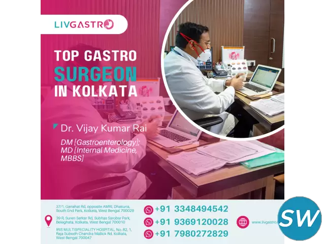 Are you suffering from digestive issues or liver concerns? Consult the best gastroenterologist in West Bengal at LivGastro, Kolkata’s trusted centre for advanced gastro and liver care. Headed by Dr. Vijay Kumar Rai, widely recognised as a gastroenterologist liver specialist and advanced endoscopist, LivGastro offers expert treatment for fatty liver, acidity, ulcers, IBS, and more. With advanced procedures like endoscopy, your health is in the best hands. Enjoy complete care from diagnosis to diet counselling and pharmacy support—all under one roof. Consult the best gastro surgeon in Kolkata to improve your digestive health.