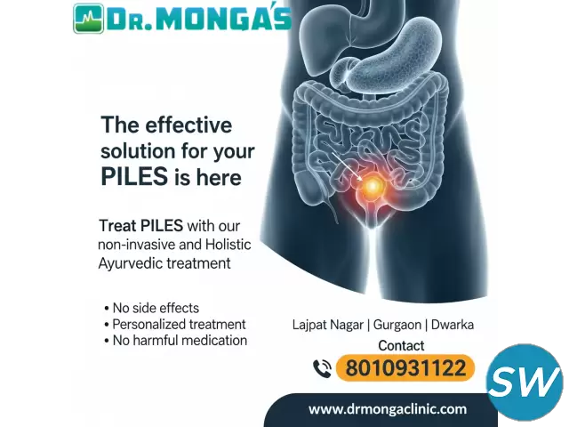 If you are suffering from bleeding hemorrhoids and looking for the best treatment, Dr. Monga Medi Clinic offers advanced Ayurvedic and modern therapeutic solutions to provide quick relief. Bleeding piles can cause pain, discomfort, itching, and difficulty during bowel movements. At our clinic, specialists provide personalized care by identifying severity, lifestyle factors, and underlying digestive issues. Their safe, non-surgical methods help reduce swelling, stop bleeding, and promote long-term healing. With years of expertise, the clinic ensures patients recover without complications. If untreated, bleeding piles may worsen, so early care is essential. Book your consultation today and get expert guidance for fast recovery.