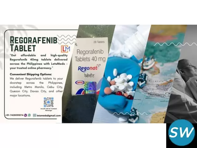 Looking to buy Regorafenib 40mg tablets in the Philippines at an affordable price? LetsMeds Pharmaceuticals offers a reliable and convenient way to purchase genuine Regorafenib tablets online, with fast delivery available across Metro Manila, Quezon City, Cebu City, Davao City, and other major locations. Whether you're searching for the best Regorafenib tablet price in the Philippines or trusted Regorafenib brands online, LetsMeds ensures quality products at competitive rates. To check availability, pricing, or to place an order, contact us via WhatsApp or connect on Skype/WeChat at LetsMeds.