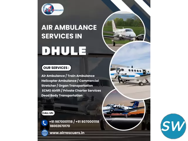 Book reliable air ambulance services in Dhule for urgent medical transport across India. Our aircraft are equipped with advanced ICU facilities, experienced medical professionals, and a rapid-response team. Safe, affordable, and available 24/7 for emergency patient transfers.