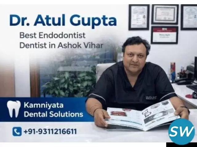 Dr. Atul Gupta is known as one of the best endodontists in Ashok Vihar, working at Kamniyata Dental Solutions. An endodontist is a special type of dentist who focuses on treating the inside of teeth, especially the roots. Many people visit Dr. Gupta for help with tooth pain or infections because he has a lot of experience and uses the latest techniques. His goal is to save teeth and help patients feel better quickly.