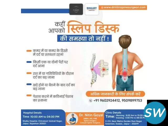 Looking for expert care for your spine? Meet Dr. Nitin Goyal, recognized as the best spine surgeon in Jaipur. He is known for his compassionate approach and effective treatments. Whether you are dealing with a slipped disc or need specialized spine care, Dr. Goyal combines years of experience with the latest techniques to help you live without pain. Patients trust him for his honest advice, accurate diagnosis, and personalized care plans that focus on their comfort and recovery. Don’t let spine issues hold you back; consult Dr. Nitin Goyal and take the first step toward a healthier, more active life.