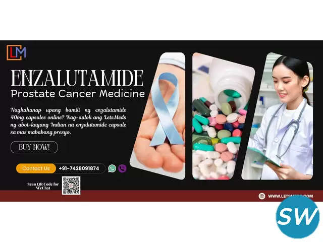 LetsMeds Pharmaceuticals offers affordable Enzalutamide capsules, catering to customers across the Philippines and beyond. With a wide range of trusted brands, including cost-effective options from India, LetsMeds ensures quality and affordability. Whether you’re looking for individual purchases or wholesale quantities, we provide competitive pricing and reliable delivery to cities like Manila, Quezon City, Cebu, Davao, Makati, Taguig, Pasig, and more. Our seamless online ordering process and dedicated support team make it easy to access high-quality Enzalutamide capsules. Contact us via WhatsApp or Viber to place your order today!