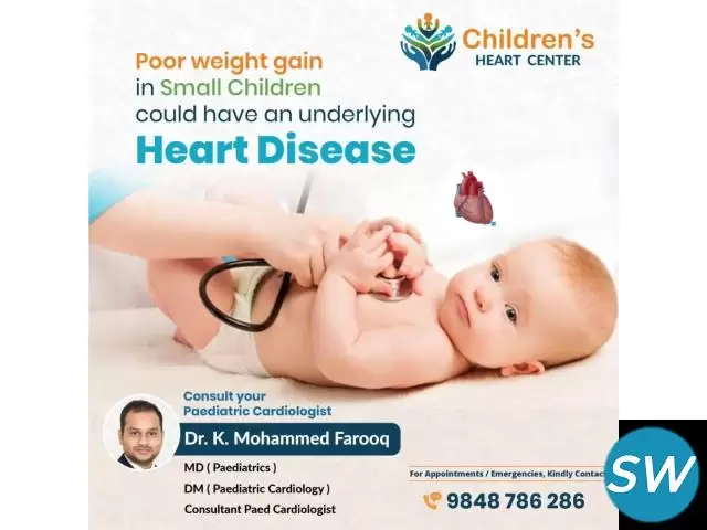 Finding a pediatric heart specialist near Birla Compound, Kurnool, or nearby districts is easy with Children’s Heart Center. Our pediatric cardiologists have years of experience treating complex heart conditions in children, including congenital heart defects, arrhythmias, and valve disorders. The center is equipped wi...