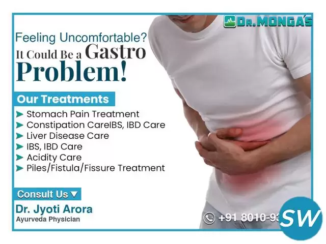 Dr. Jyoti Monga is one of the Best Ayurvedic doctors in South Delhi who provides treatments with long-lasting results. With 23 years of experience, Dr. Monga has successfully helped millions of people recover from various stomach and intestinal problems such as Piles, Gas, GERD, IBS, Colitis, Indigestion, Fatty Liver, ...