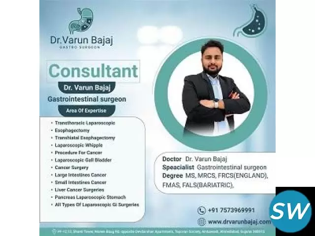 Looking for a trusted Gastrointestinal Surgeon in Ahmedabad? Dr. Varun Bajaj is a renowned gastro surgeon specializing in advanced laparoscopic, gastrointestinal, and liver surgeries. He treats digestive disorders, liver diseases, and pancreatic conditions using modern, minimally invasive techniques. With a strong patient-focused approach, Dr. Bajaj emphasizes accurate diagnosis, safe procedures, and faster recovery. He is committed to providing high-quality surgical care with precision, compassion, and the latest medical advancements for optimal patient outcomes.