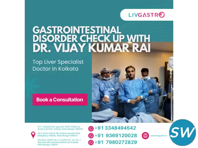 If you're experiencing symptoms like bloating, abdominal pain, acidity, or irregular bowel movements, it might be time to consult a specialist. Get a comprehensive GI check-up with Dr. Vijay Kumar Rai, a top liver doctor in Kolkata practicing at LivGastro for accurate diagnosis and personalized care. Our clinic is equipped with advanced diagnostic tools and led by an experienced liver specialist in Kolkata who focuses on treating a wide range of gastrointestinal and liver-related issues. With a patient-first approach, we understand that timely intervention can make a significant difference. That’s why our liver doctor in Kolkata takes the time to listen, investigate, and provide a customized treatment plan tailored to your health needs. Don't ignore the signs your body is giving you. Schedule a consultation today and take the first step toward a healthier gut and liver.