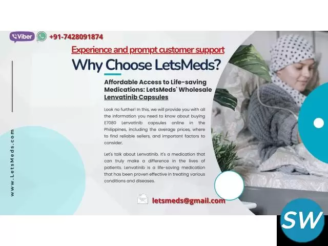 If you're seeking affordable Lenvatinib capsules online in the Philippines, LetsMeds is your trusted solution. We provide easy access to high-quality generic Lenvatinib capsules at competitive rates, delivering to patients across Metro Manila, Cebu, Davao, and other major cities nationwide. With a simple ordering process, prompt delivery, and responsive customer support, we make your experience smooth and stress-free. For reliable service and the most competitive Lenvatinib prices in the Philippines, choose LetsMeds. Reach out via WhatsApp/Viber or connect with us on WeChat/Skype at LetsMeds to place your order.