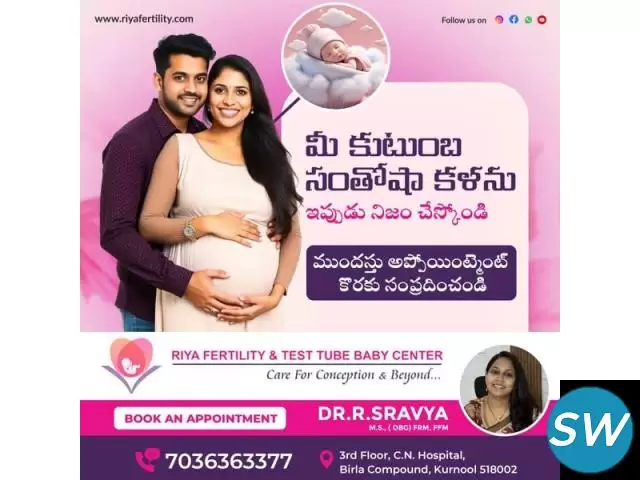 Get low-cost fertility checkups for both males and females at Riya Fertility & Test Tube Baby Centre, Kurnool. Comprehensive evaluations to support your fertility goals.