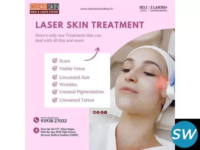 Clear Skin Hair and Laser Center boasts a prominent Skin Specialist in Kurnool Town. Experience personalized skincare solutions delivered with expertise and care to enhance your skin's natural glow.